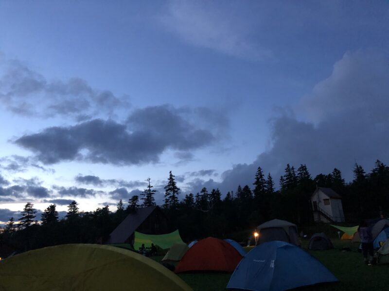 裏のキャンプ場にテントを張る頃には天気も少し回復。