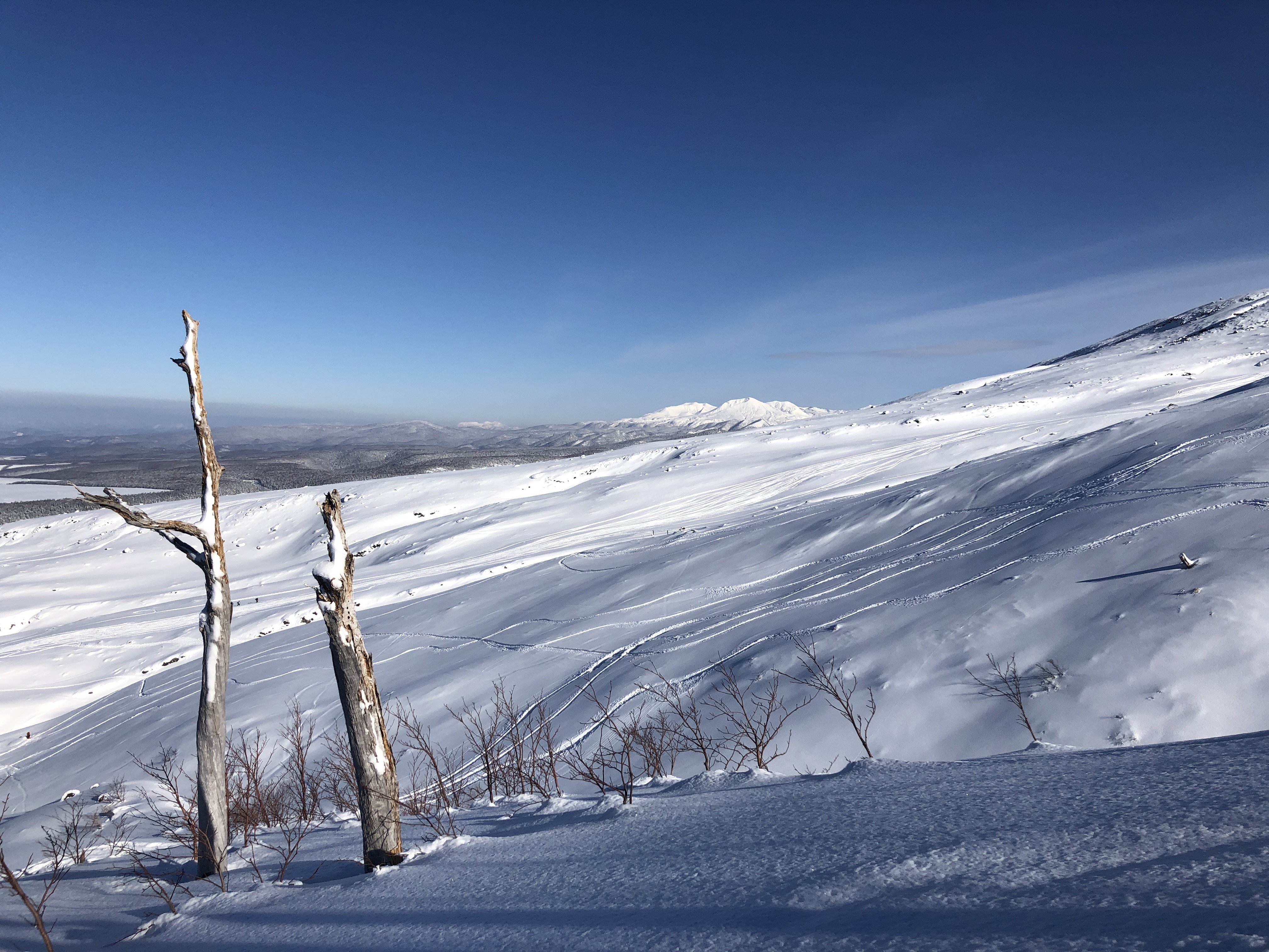 下山はトレースがないところの方がふかふかして気持ちいい。